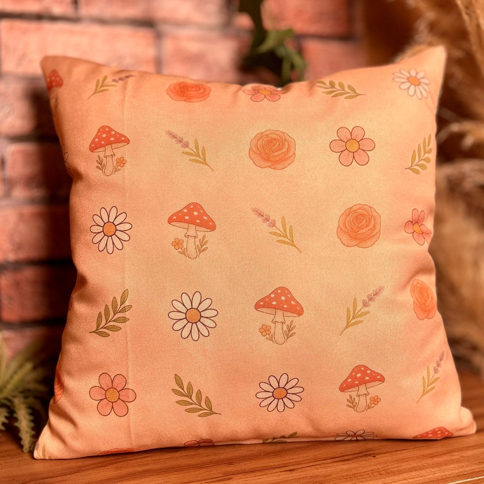 Assim como um jardim encantado, esta almofada transmite a sensação de frescor e leveza. Cada flor e cogumelo estampado é um lembrete da beleza das coisas simples e da magia que se revela nos detalhes do dia a dia.