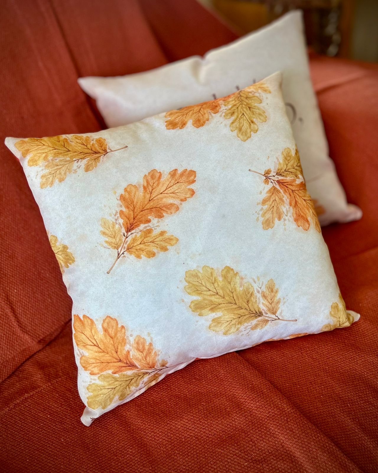 Use essa capa combinada com velas aromáticas de canela, maçã ou baunilha para intensificar a atmosfera acolhedora e criar um verdadeiro refúgio de outono dentro de casa.