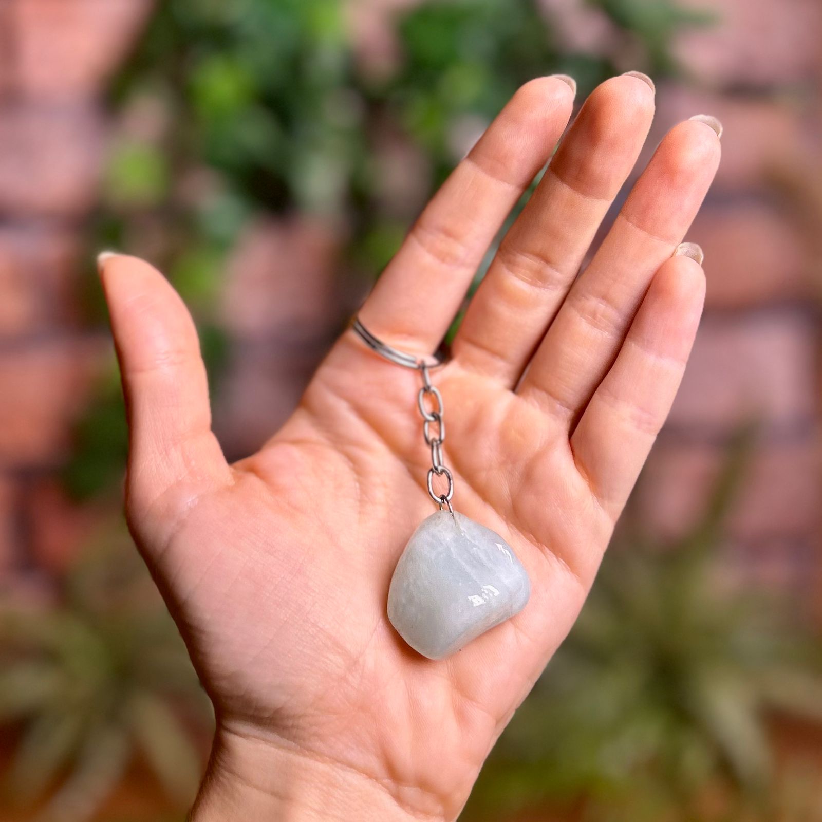 Coloque o chaveiro em chaves usadas diariamente para manter a energia leve e protegida. Se desejar maior fluidez mental, segure a pedra por alguns instantes antes de iniciar o dia.