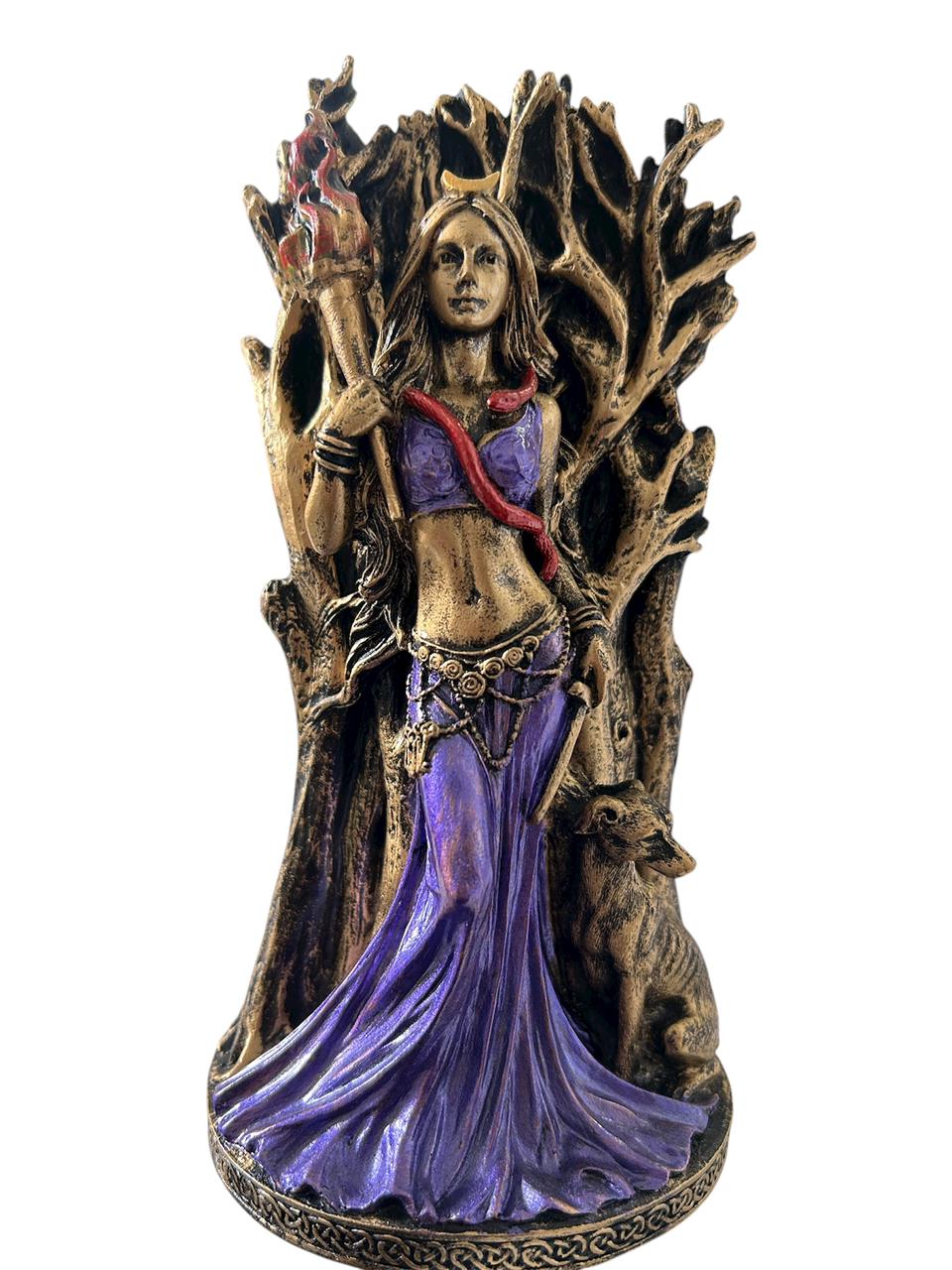 Meta Description: Estátua da Deusa Hécate em resina. Protetora das bruxas e guia espiritual das encruzilhadas. Símbolo de poder, sabedoria e transformação.