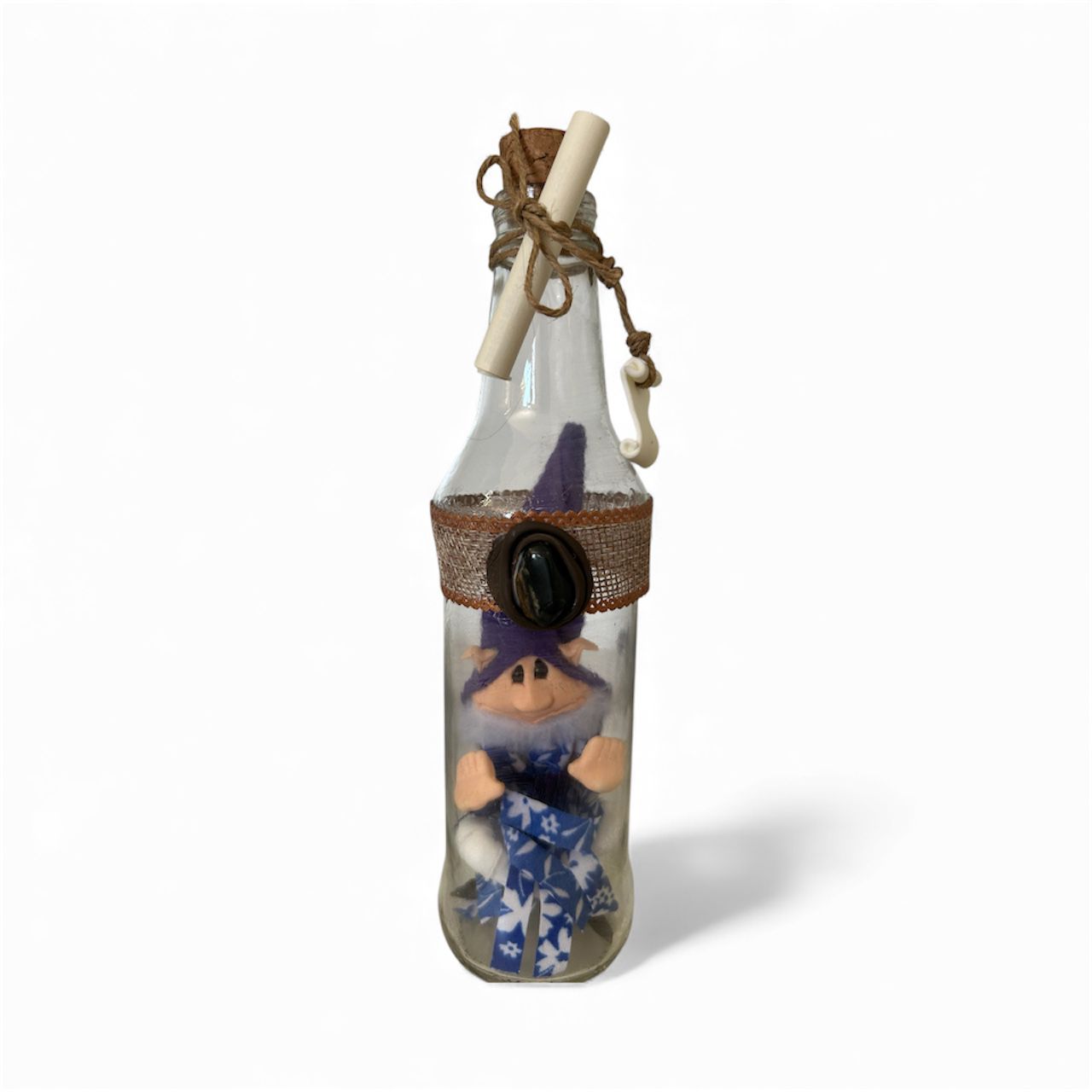 O outro, logo no primeiro dia apareceu com o vidro da garrafa quebrada, querendo sair. Logo que chegaram foram todos revisados para conferir se estavam inteiros. Ele não caiu, estava em cima da mesa e apareceu quebrado no mesmo dia já liberamos ele da garrafa.