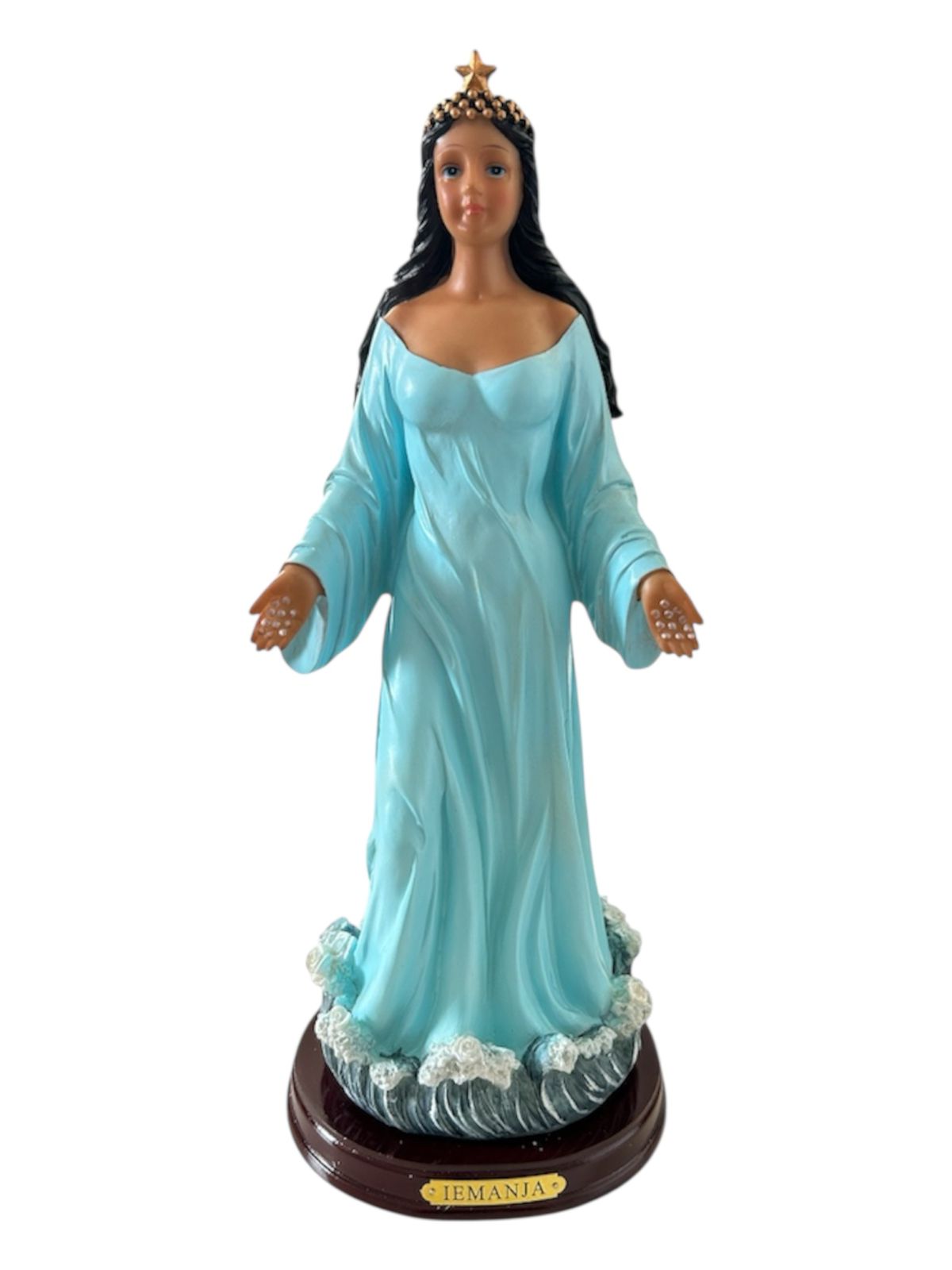 Mãe das águas salgadas, senhora dos mares profundos e dos corações que buscam acolhimento. Esta imagem de Iemanjá representa o amor materno, a proteção e a força serena que flui como o oceano — firme, vasta e eterna.