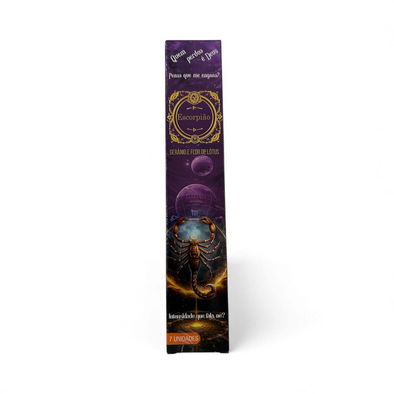 Escorpião é profundidade, transformação e renascimento. Este incenso une a força emocional do gerânio à pureza espiritual da flor de lótus, criando um campo sutil para transmutar emoções, acessar o silêncio interior e despertar a própria potência.