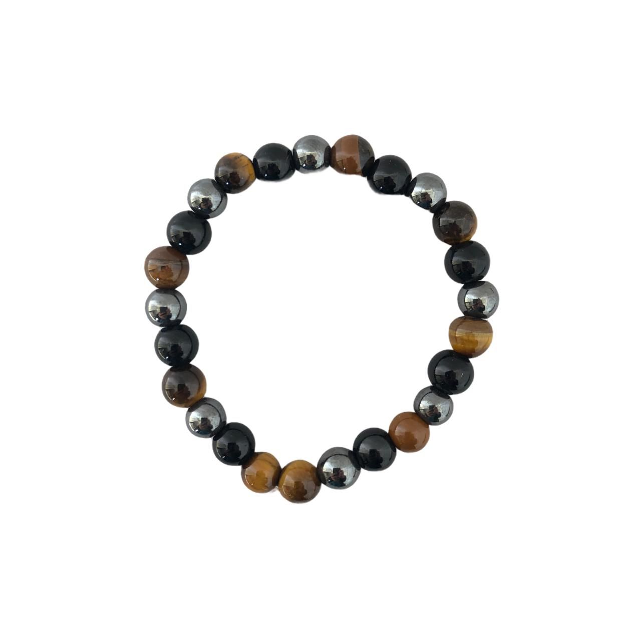 Pulseira com as pedras: hematita, onix e olho de tigre