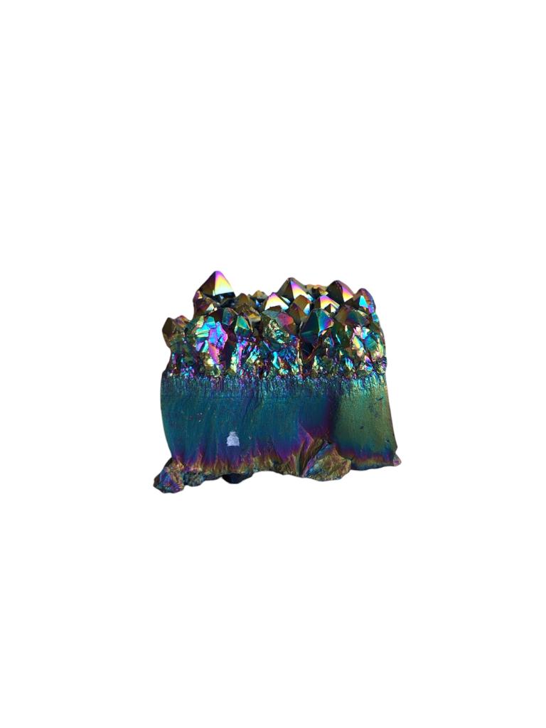 - O Quartzo Aura Titânio é também conhecido como a pedra da alegria por trabalhar realinhando os nossos chakras, promovendo maior vitalidade e auxiliando na melhoria do humor e na percepção da diersão.