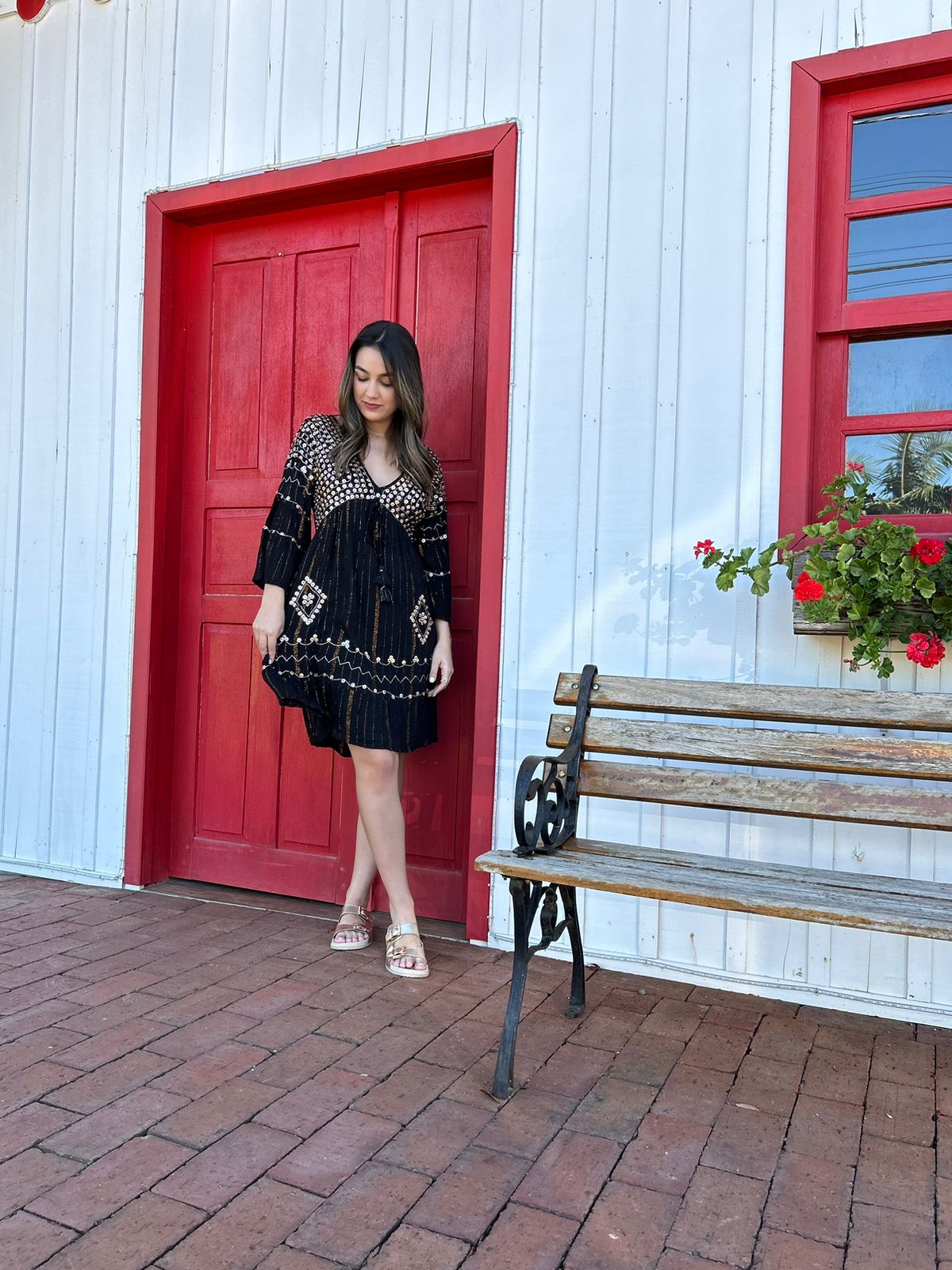 Vestido Longo Lantejoula Preto com Dourado Tamanho Único