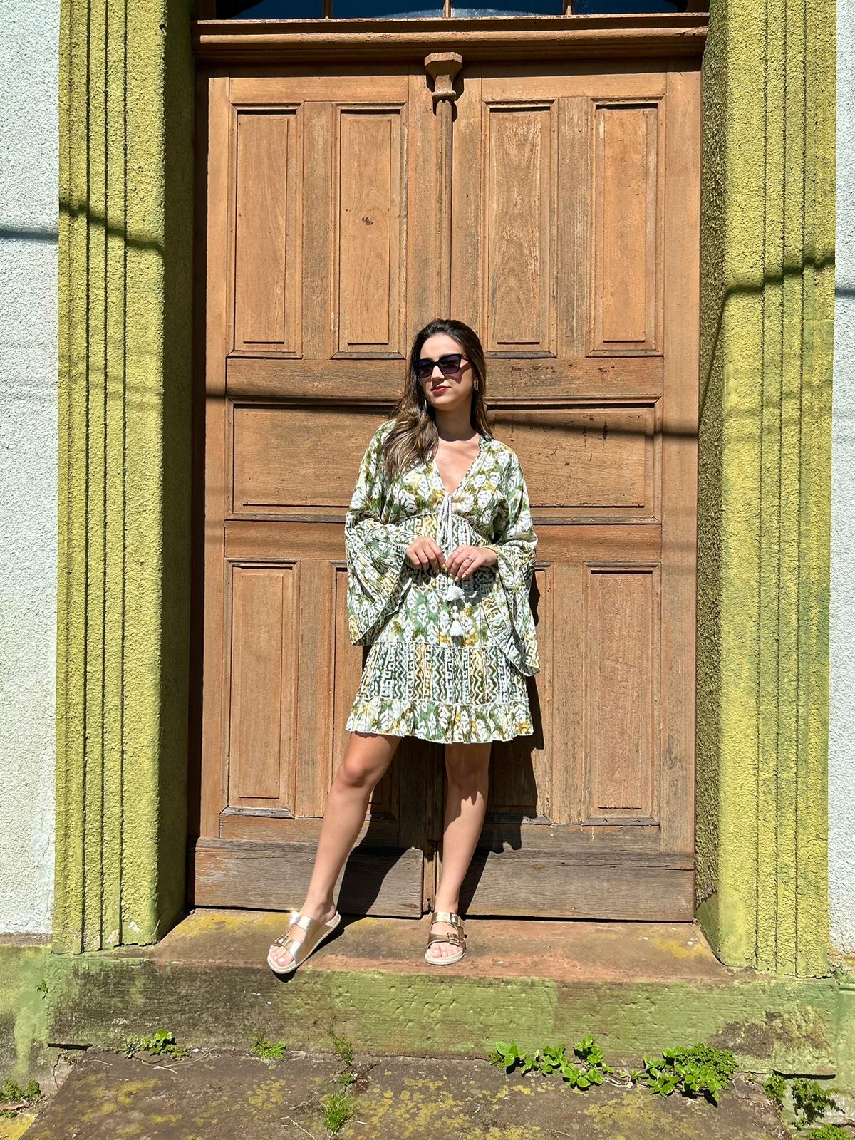 Vestido curto estilo Boho na cor verde